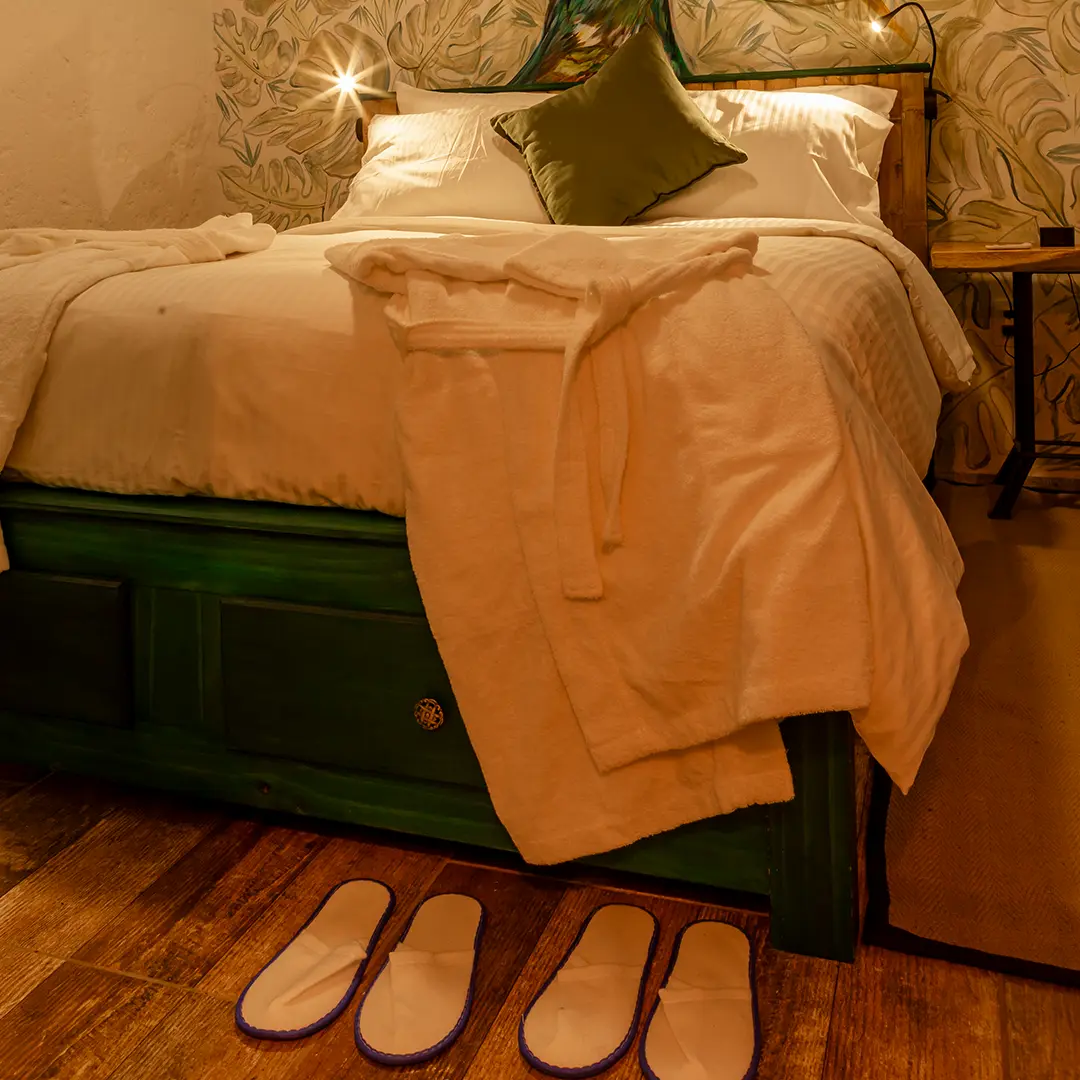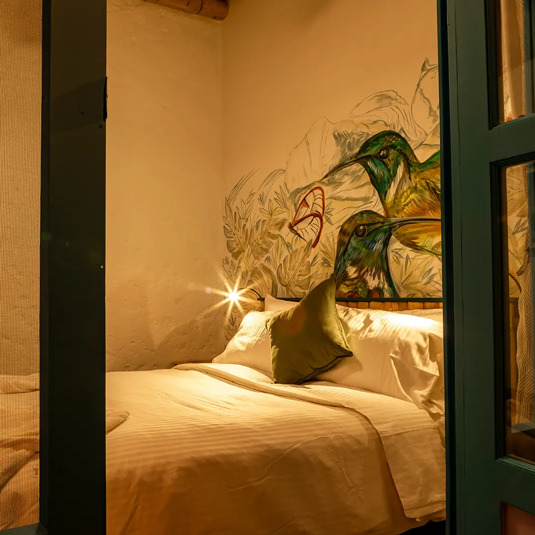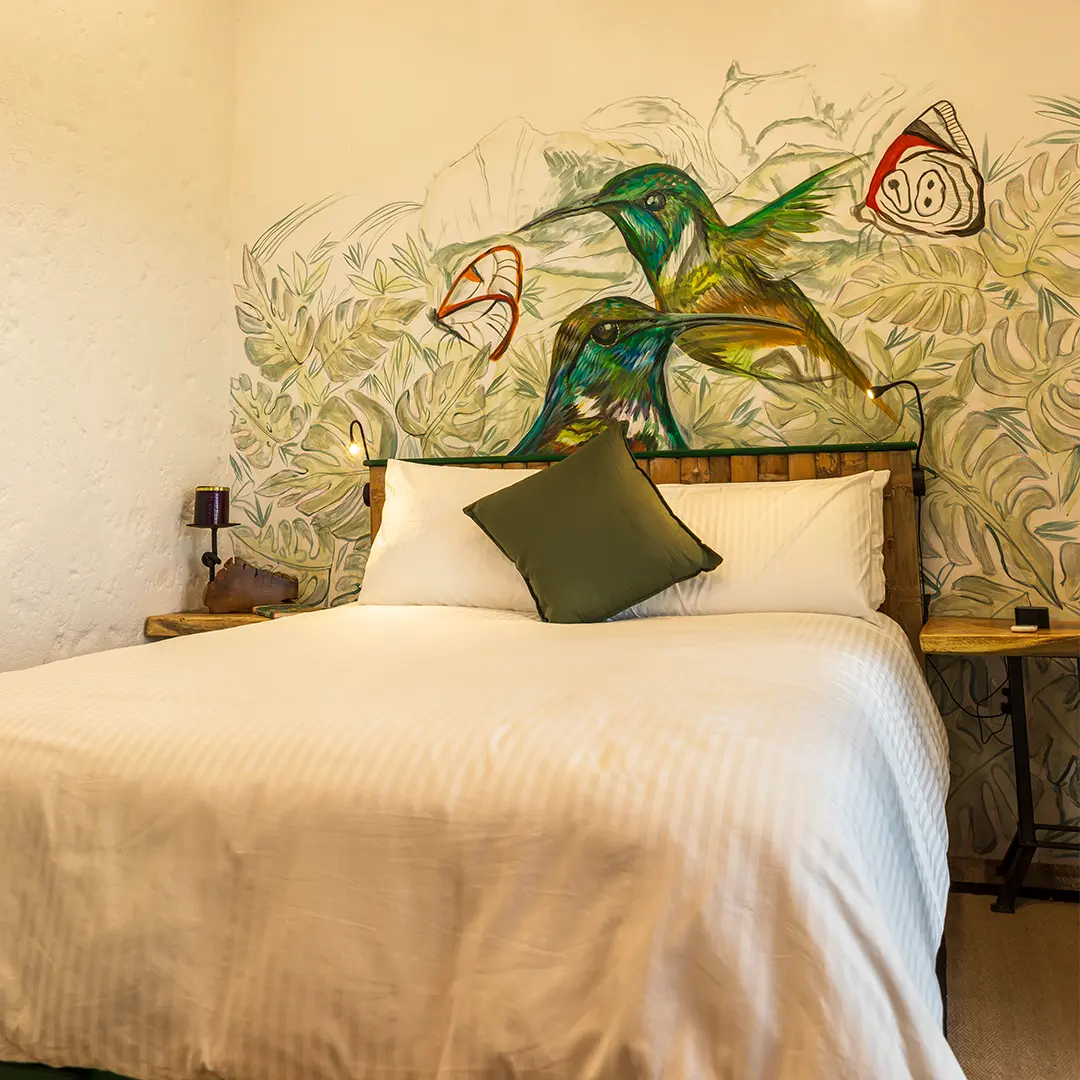 Déjate envolver por la suavidad de la luz y el susurro de la naturaleza. La habitación Colibrí es un refugio donde cada detalle ha sido pensado para tu descanso: cama doble con ropa de cama suave, baño privado con ducha amplia, secador de cabello, batas y artículos de aseo premium. Clóset, caja fuerte y un encantador patio con vista al jardín, donde los colibríes suelen pasar rozando las flores.