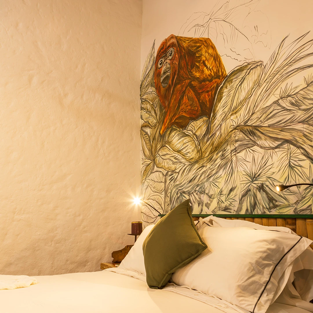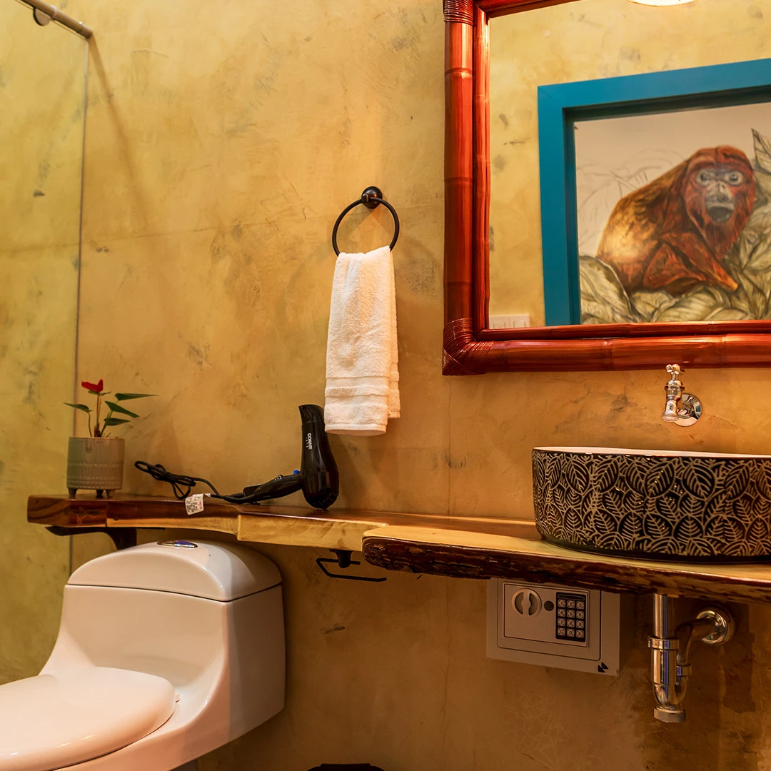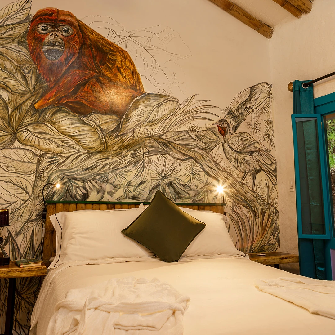 Perfecta para quienes aman el contacto con lo auténtico e íntimo. La habitación Mono Aullador combina un diseño cálido con el confort que necesitas: cama doble, baño privado espacioso, secador, artículos de aseo selectos, vista al barranco. Aquí despertarás con la energía del entorno y el susurro de la montaña.