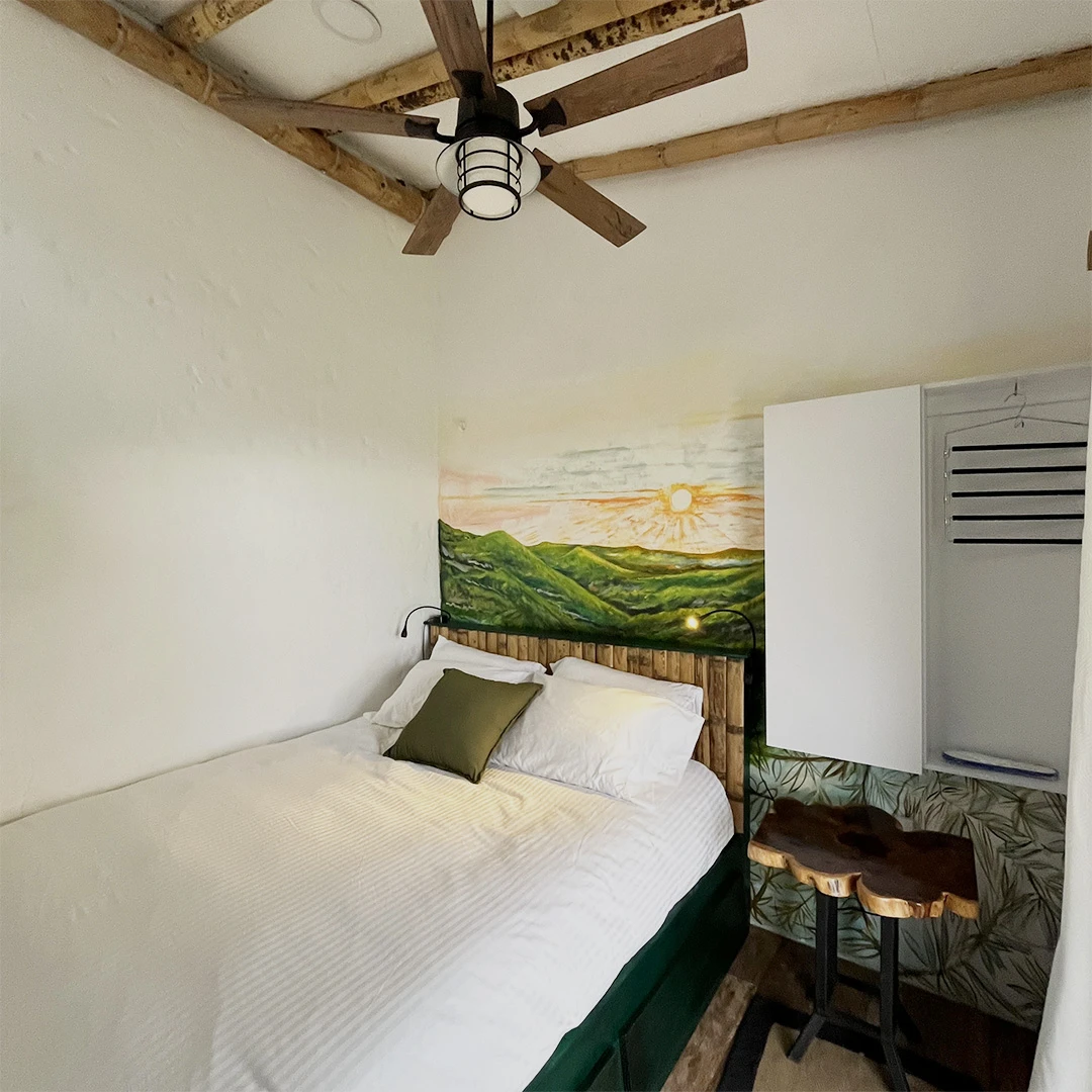 Con cama doble, baño privado, ducha, clóset, caja fuerte, con vista inmediata al jardín y al fondo una panorámica hermosa de Pereira y Cartago, esta habitación ofrece el refugio ideal para contemplar el amanecer o perderse en la calma de la noche.